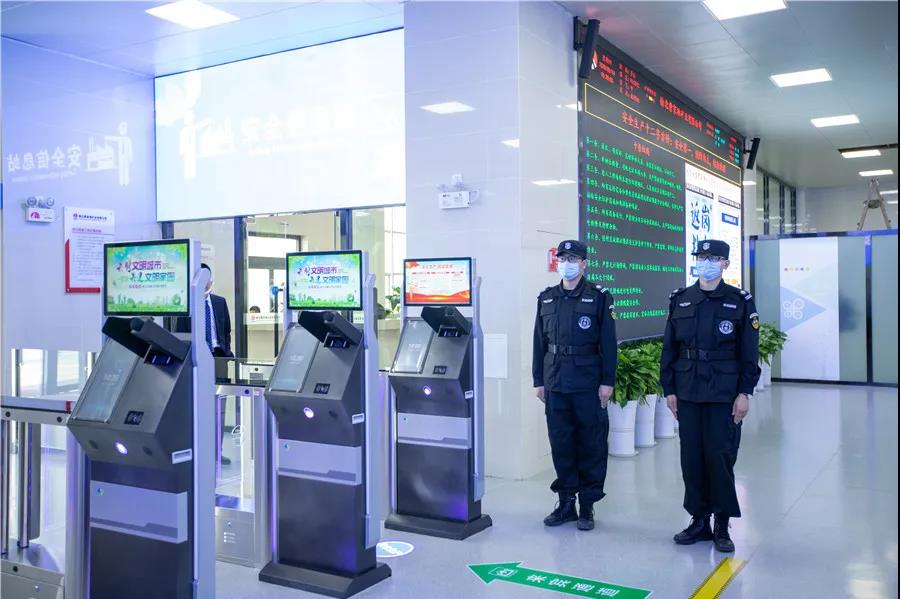 在井口智能安檢大廳,準(zhǔn)備入井的員工正排著隊(duì)在智能綜合安檢一體機(jī)前刷虹膜入井,通過之時(shí),還要在智能綜合安檢一體機(jī)上進(jìn)行安全知識(shí)答題。